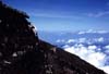 この時、先頭チームは、もう既に頂上で御来光。(頂上は御来光の時、「君が代」が流れるらしい。) 真ん中のチームははぐれ、一人一人バラバラで心細く見ていたそうです。ここまで来れば(9合目)もうすぐ頂上かと思いきや、なかなか着かないのです。目の前(上)に頂上が見えているのに。