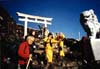 今まで暗くて見えなかった分、目標が見えていると、本当に自分たちが進んでいないのが分かるのです。 御来光から1時間あまり、ついに山頂入り口の鳥居をくぐります。