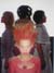 | 知人の吉野カメラマンと共に、仕込み10時間、撮影4時間。(風のヘア−で8時間くらいかかりました。)ぼろぼろになり、午後10時終了。 この時点では、「花」「雪」「月」の本番モデルは決まっていたのですが、風のモデルだけが決まっていなかったのです。 風を感じるように、長い毛を切らせてくれる人を・・・・・・・ ところが、舞い込んできました。飛んで火に入る、プラーっと初めて来店してきた人でした。その場で口説き落とし、交渉成立。6日前の事です。 2月16日ゲネプロ。 この時に全員、やっと形が見えてきたといっても過言ではないでしょう。 お互いのパーツパーツを午後二時から始め、練り上げていく過程で、やっと中島氏が三曲の曲間で三つの作品を書く事が決まりました。 三浦さんはスライドとそのライブ上の撮影。そして、パンフにはってあるプリクラ、会場入り口に貼り出された写真、とここに来て一気にアイデアが生まれました。 自分のパーツも、アップテンポのパーカッションソロから入り、Rock and Rollに移る事になり、曲間での動きを確認しながら、進みます。少し遅れ、19:00頃から本番と同じ進行で一度通して、終わりの21:30頃には全員「やれる」という確信が持てました。 |