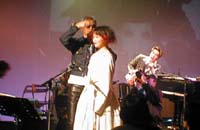 カットが終わると、そのドレスに中島氏に書を書いてもらい、少しエロティックさを出しました。楽屋ではオッパイをさわったと怒られていました。